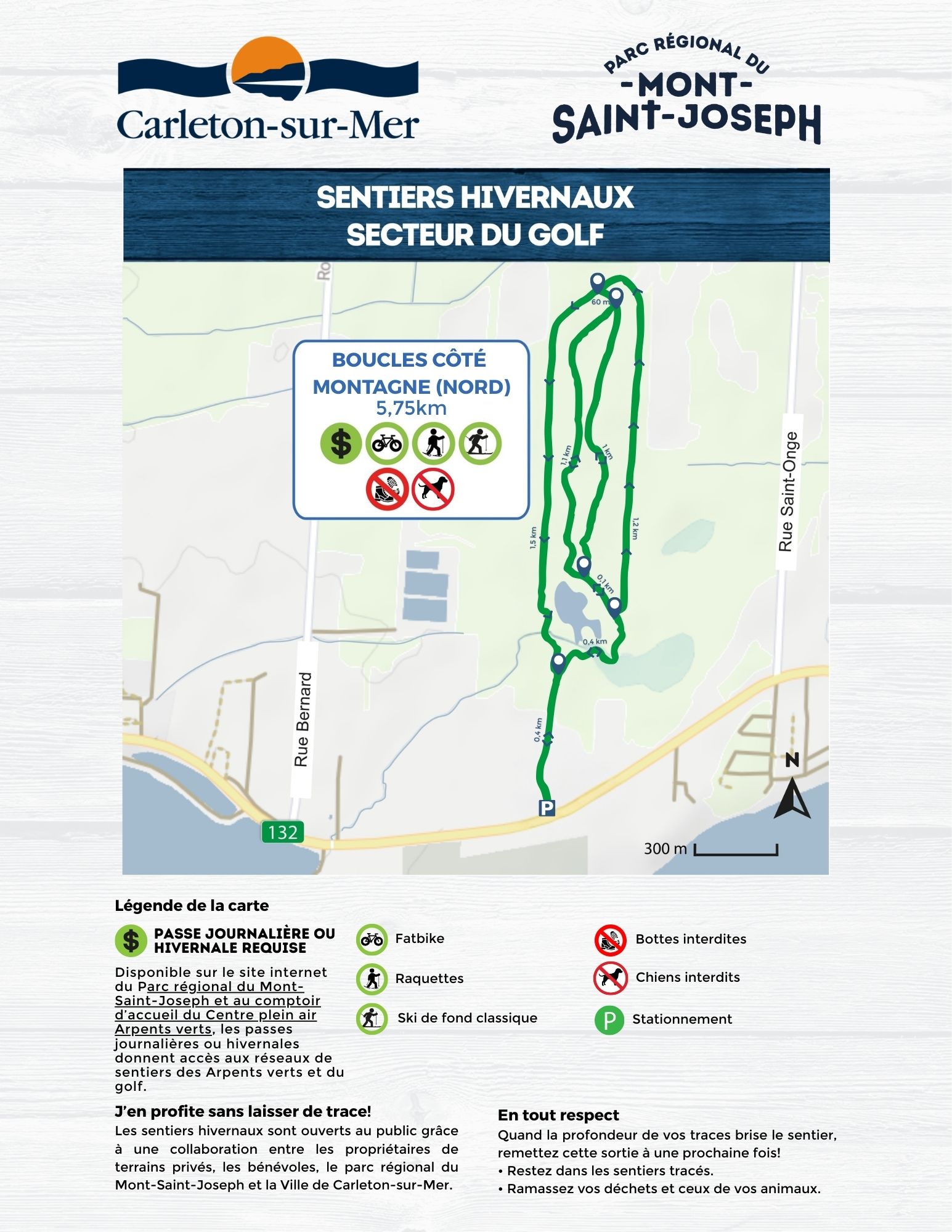 *Récupérer sa passe hivernale plastifiée auprès du service d’accueil du Centre plein air Arpents Verts ou à la réception de l’hôtel de ville de Carleton-sur-Mer, selon leurs heures d’ouverture.